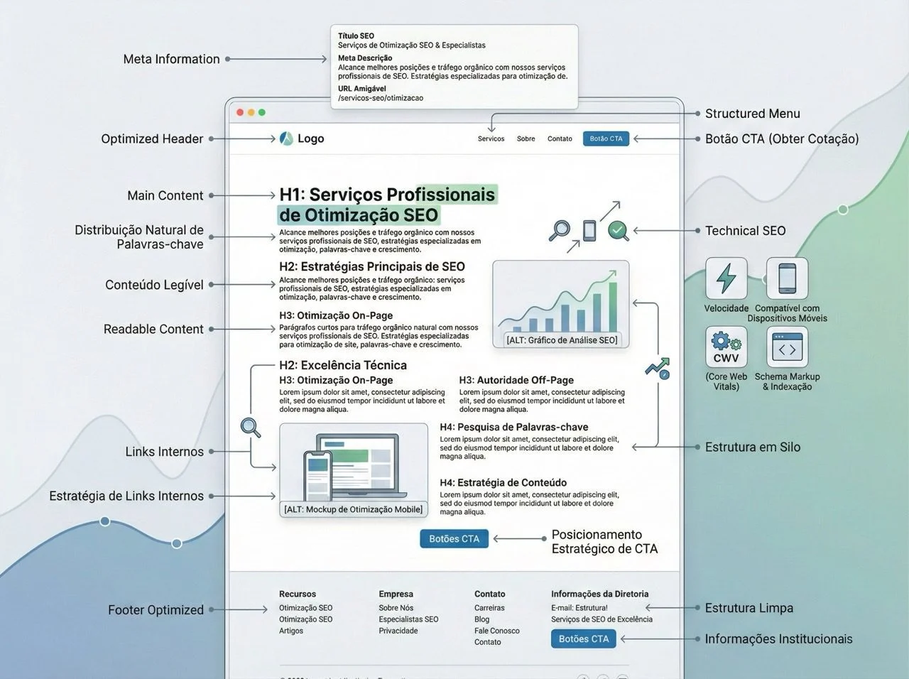 A otimização de SEO é o processo de ajustar toda a estrutura do site para melhorar o posicionamento nos mecanismos de busca, aumentar o tráfego orgânico e gerar oportunidades reais de negócio.