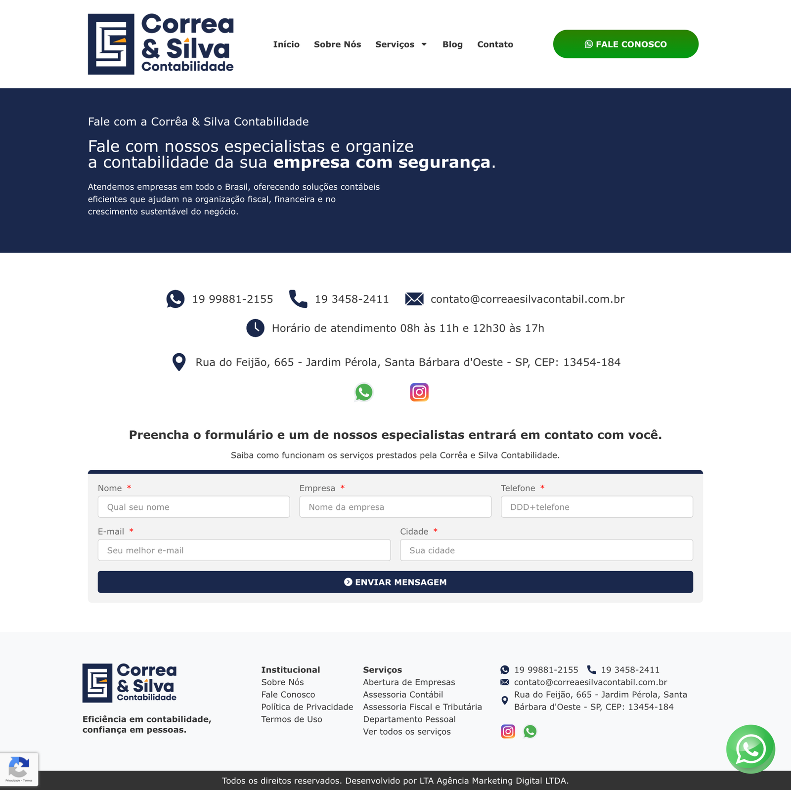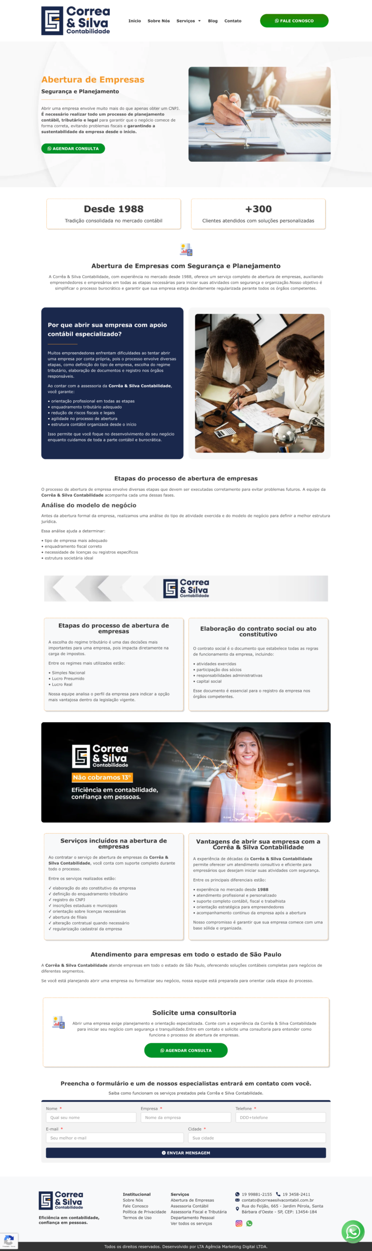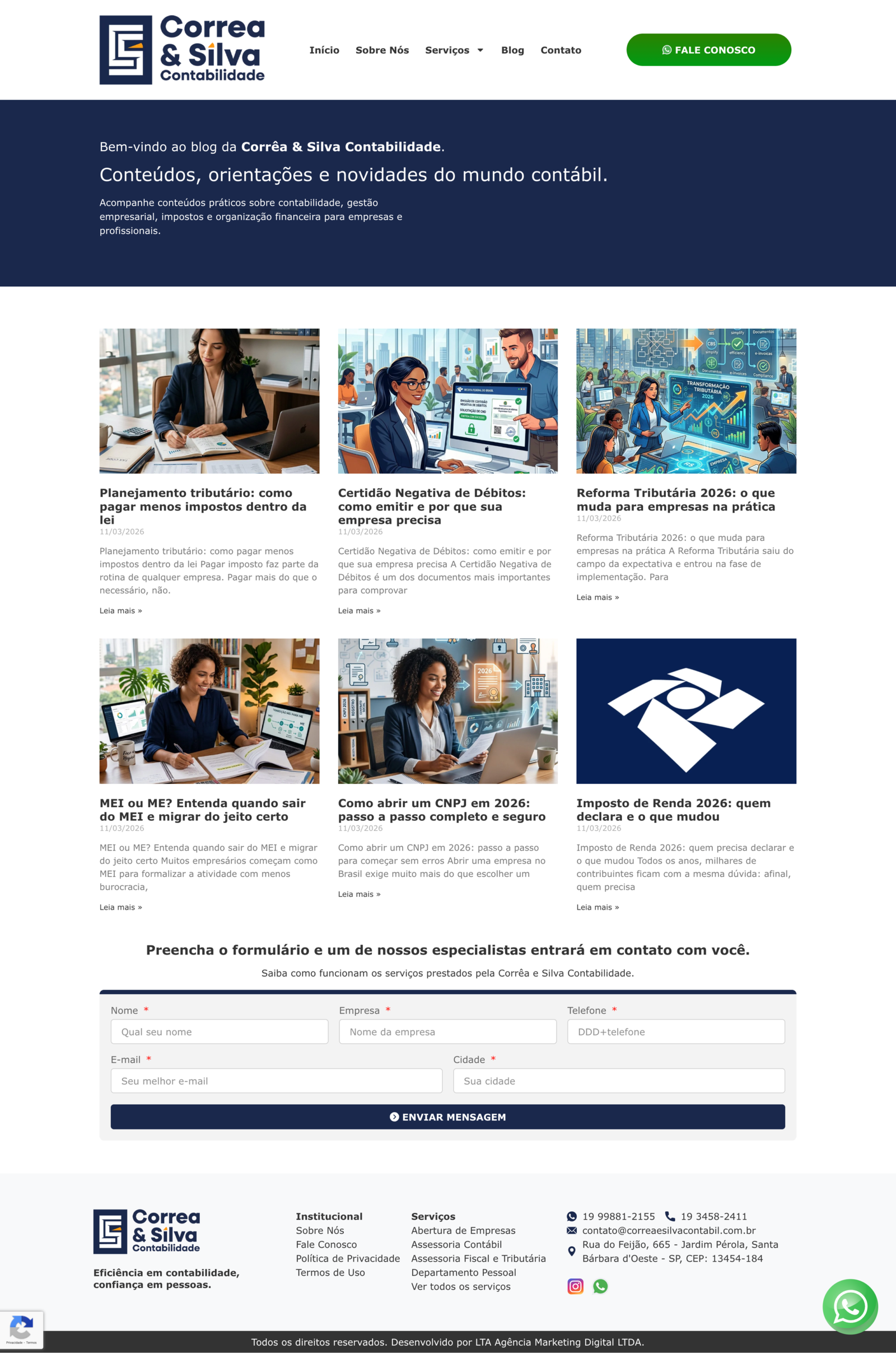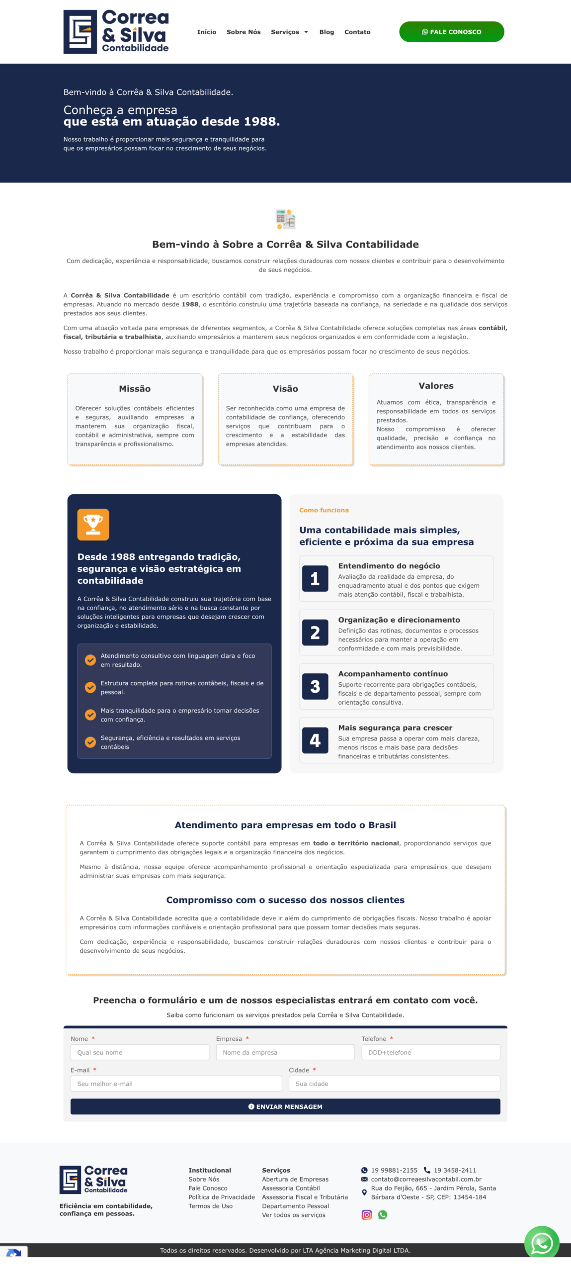 Desenvolvimento de site profissional para a Corrêa e Silva Contabilidade, com foco em SEO, performance e geração de leads. O projeto foi estruturado para fortalecer a presença digital da empresa, transmitir credibilidade e atrair novos clientes através do Google.