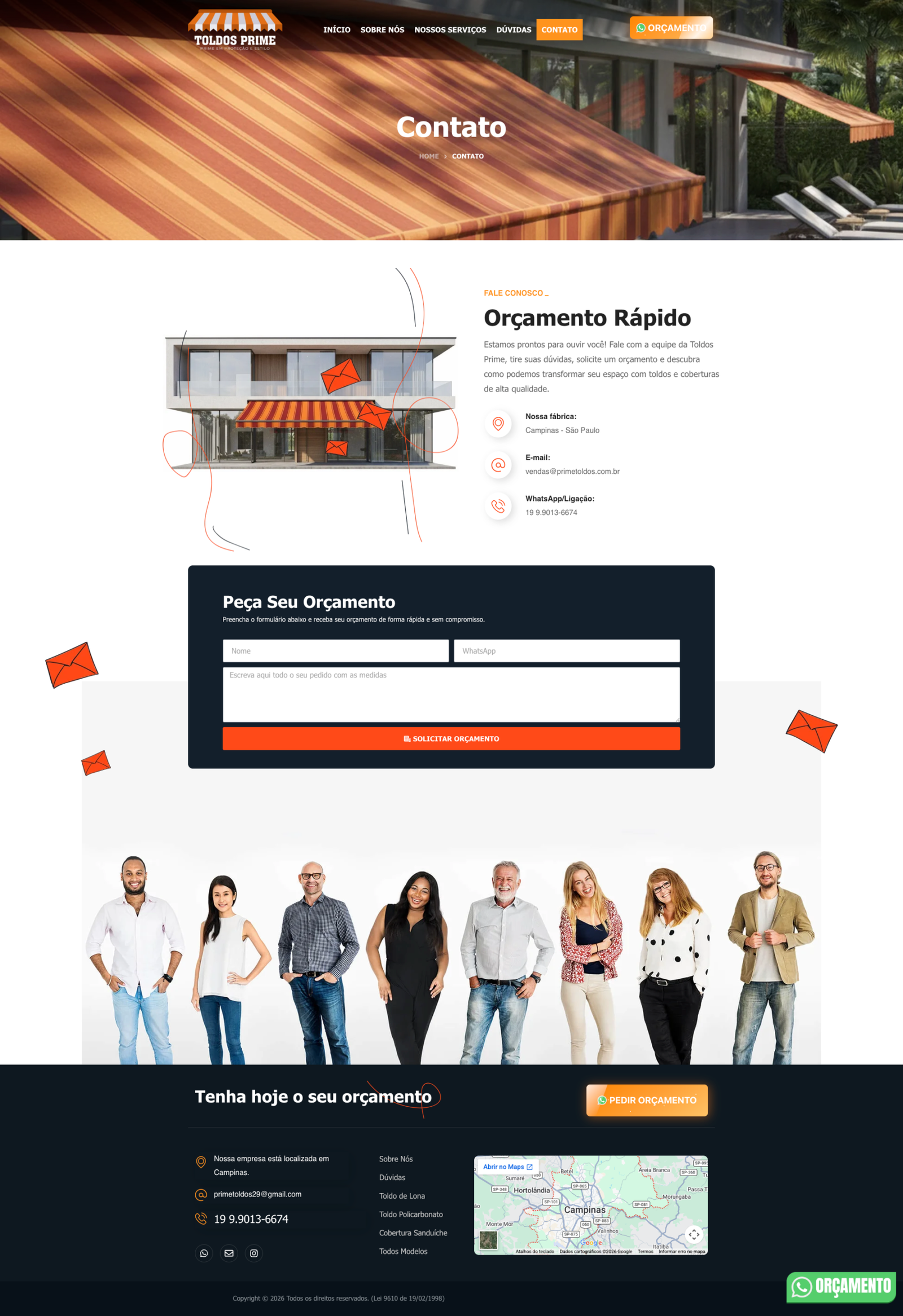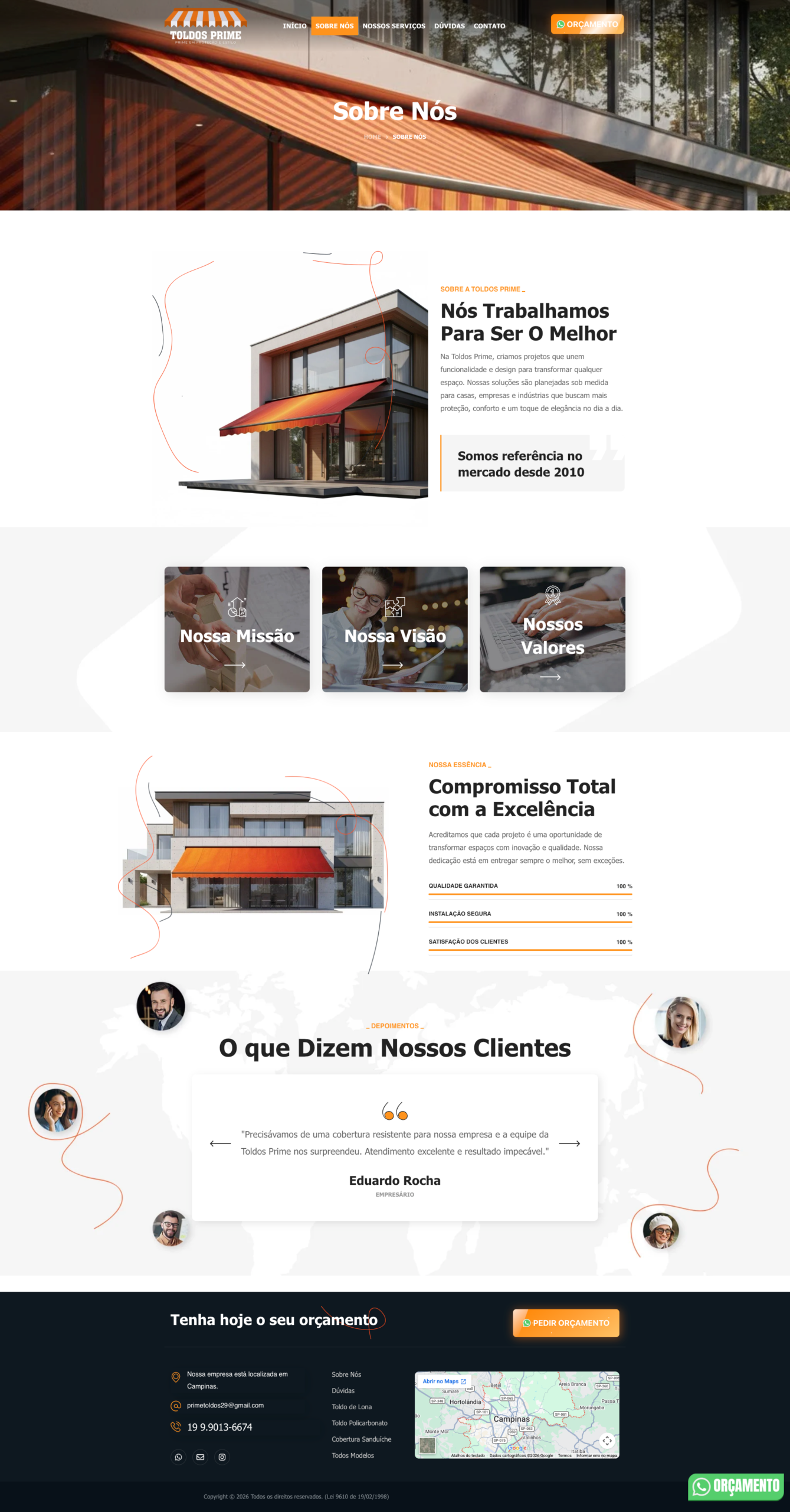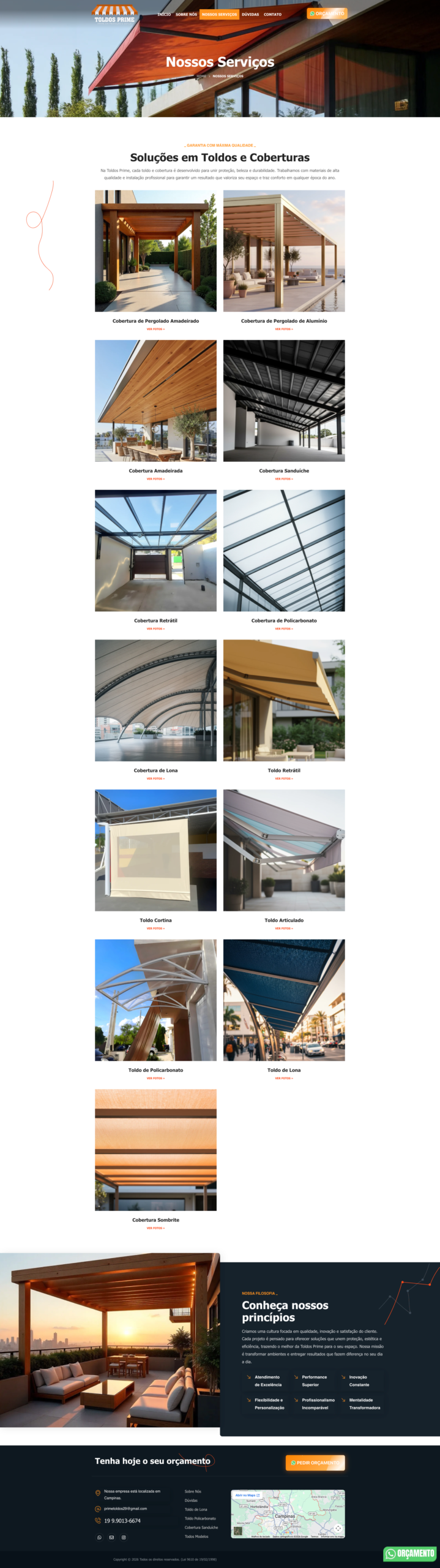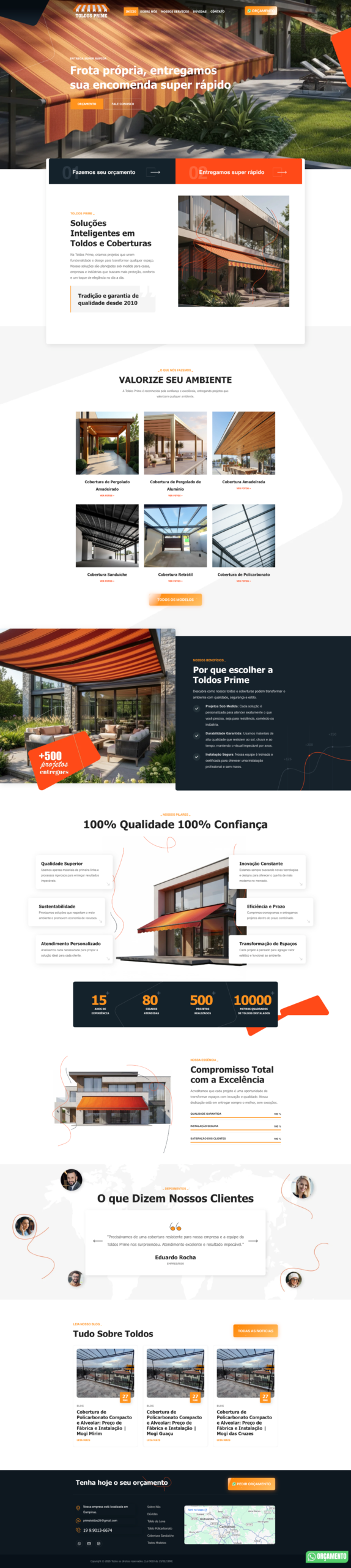 Desenvolvimento de site profissional para a Prime Toldos, com foco em SEO, posicionamento digital e geração de leads. O projeto foi estruturado para destacar seus serviços de toldos e coberturas, aumentar a visibilidade no Google e atrair novos clientes.